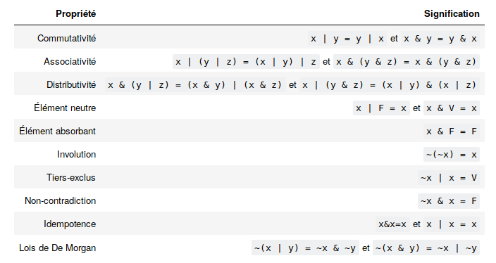 algèbre de Boole) quelconques, F désignera FAUX et V désignera VRAI.